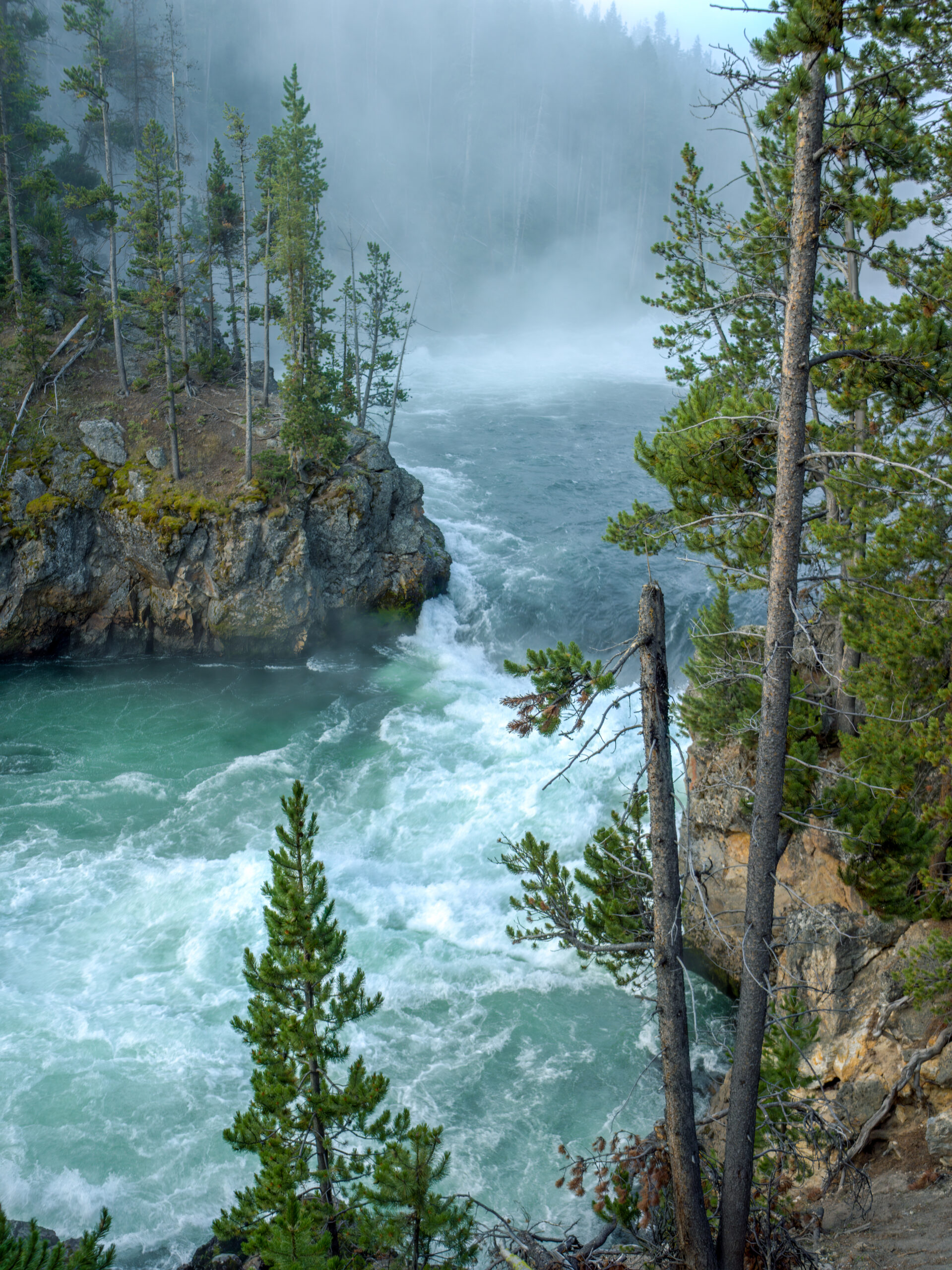 Early morning fog draping the powerful Yellowstone River.
