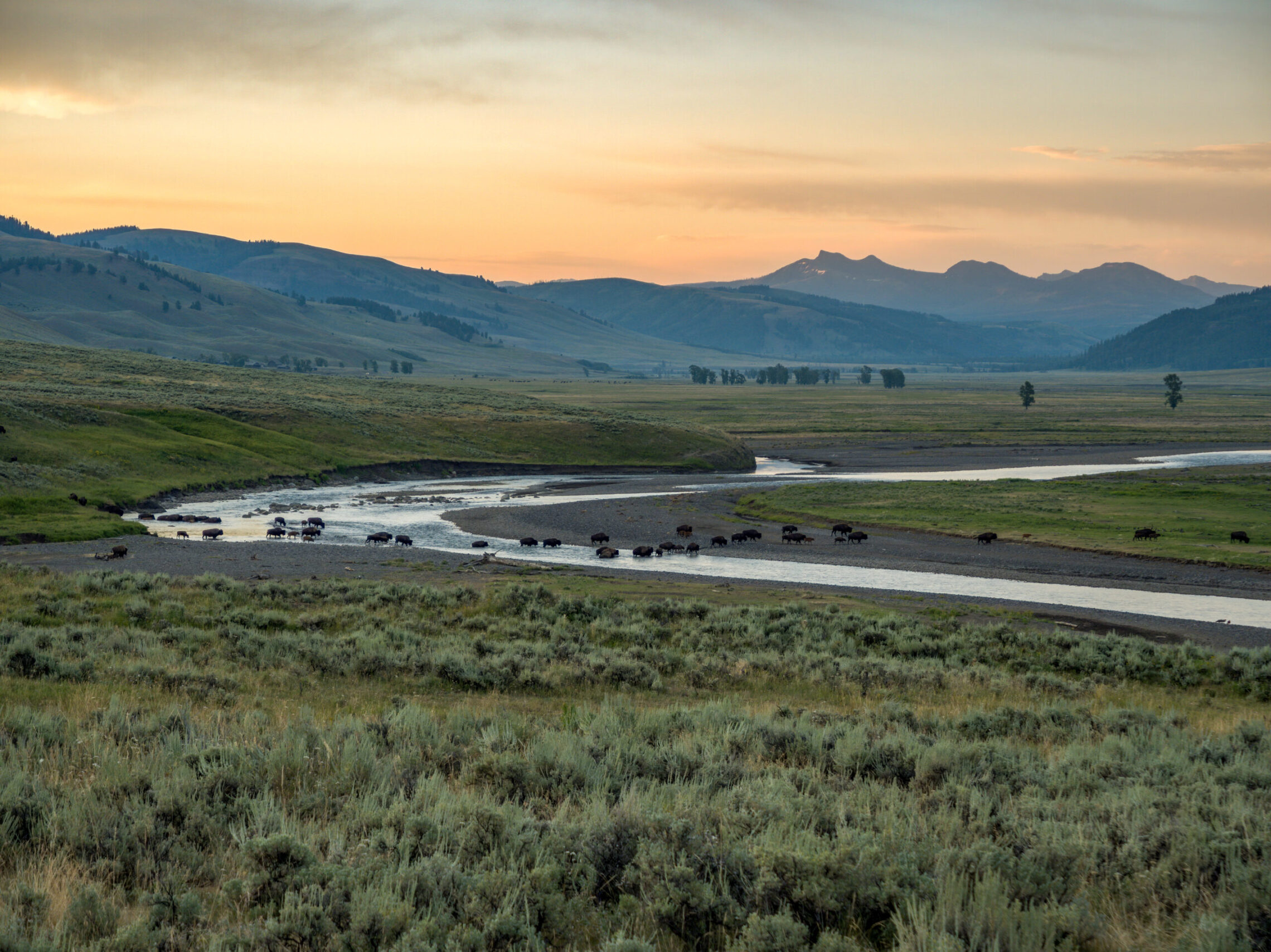 My favorite photo from Lamar Valley is of a herd of Bison slowly making its way across the plains. I took this photo while hiking early in the morning on the Lamar Valley Trail, which the first couple miles of the trail pass amongst hundreds of Bison.