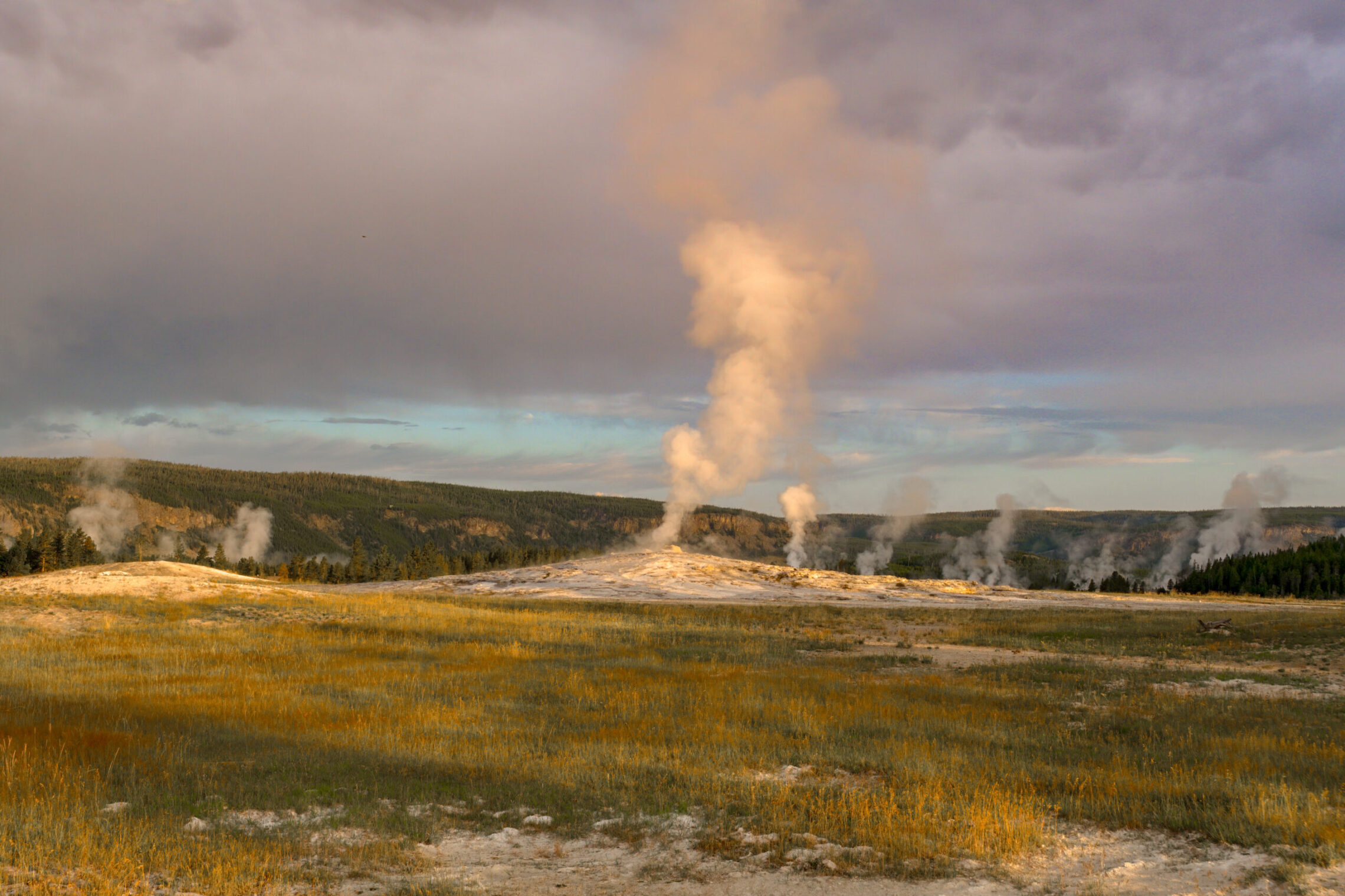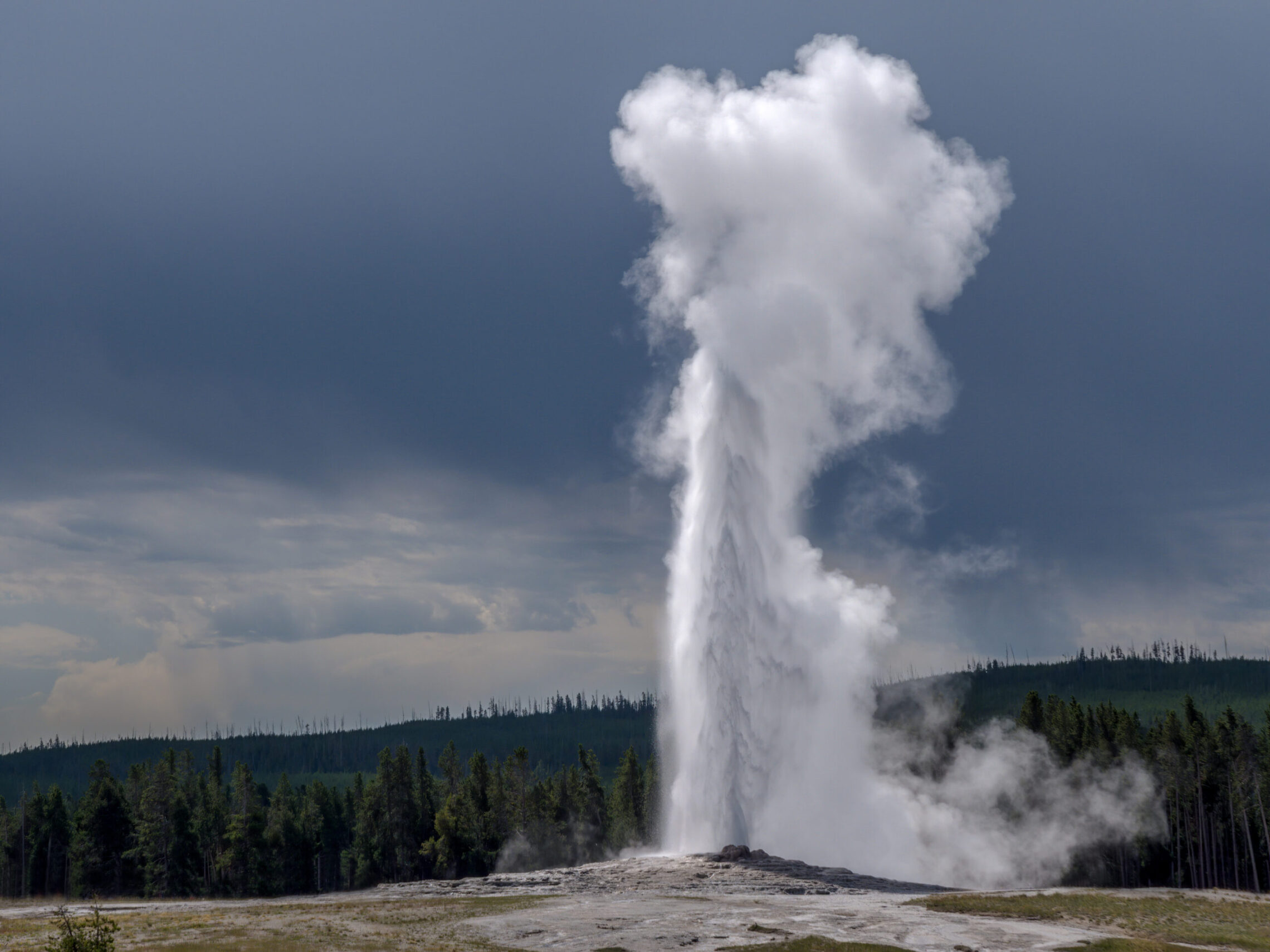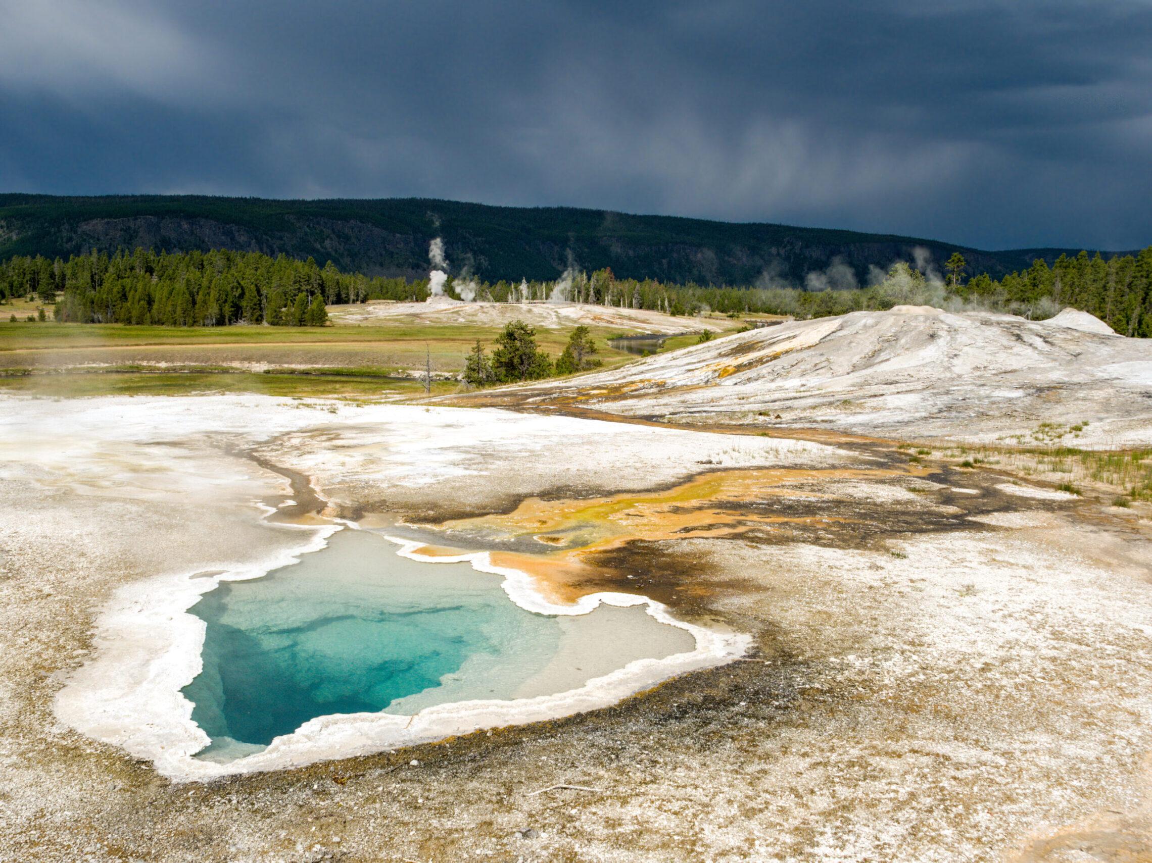 On my final day, a storm came in just as Old Faithful was going off, providing a nice back drop and contrast to the Geyser.