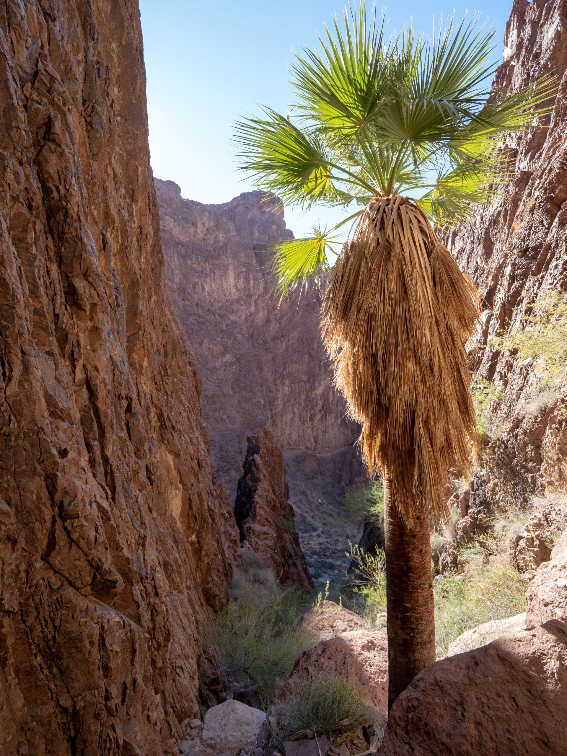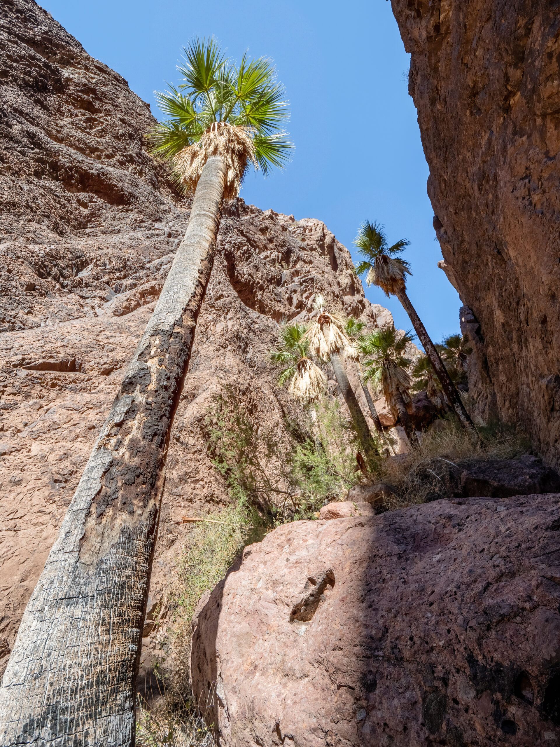 Most of the people visiting Kofa for the day tend to stick to the Palm Canyon Trail, which is a short and easy hike up a canyon, ending at a section of naturally growing palm trees. Palm trees are generally not native in Arizona, with the exception of a very small cluster of California Fan Palms, existing up a steep ravine, inside a narrow canyon in the Kofa Mountains.