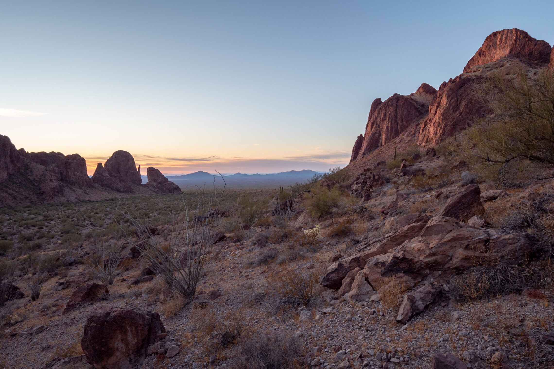 Kofa National Wildlife Refuge is an area of nationally protected land originally established as part of an effort to protect the bighorn sheep which reside within the park. There are established hiking trails, but off-trail hiking and backpacking is also allowed although only appropriate for experienced and well-prepared individuals. It is also a great site for being able to camp for free for up to 14 days. The camping is dispersed style, so you are far away from any neighbors, allowing for a more intimate experience with the desert as you spend the night, and is what I consider to be the most ideal form of public camping.