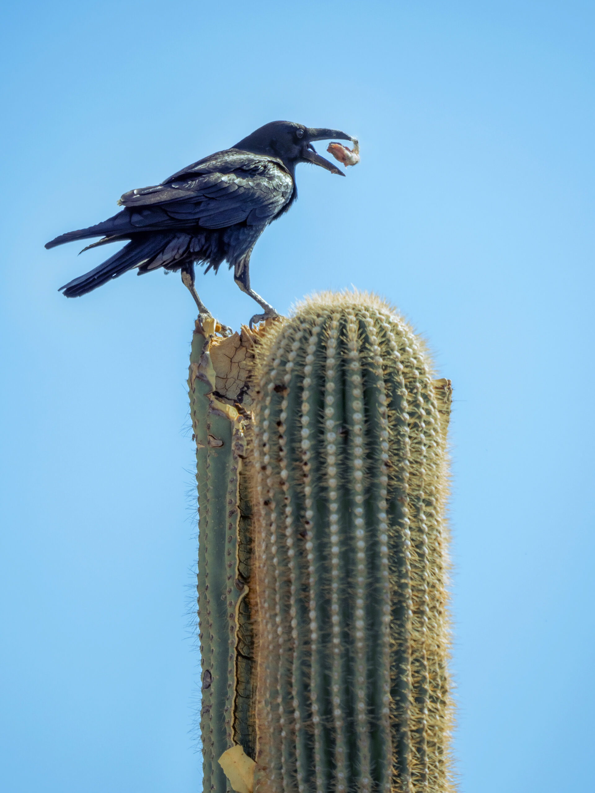 A really cool thing I was fortunate to capture was this Raven stealing an embryo from the egg of another bird’s nest, built into a cavity in the top of a saguaro cactus.
