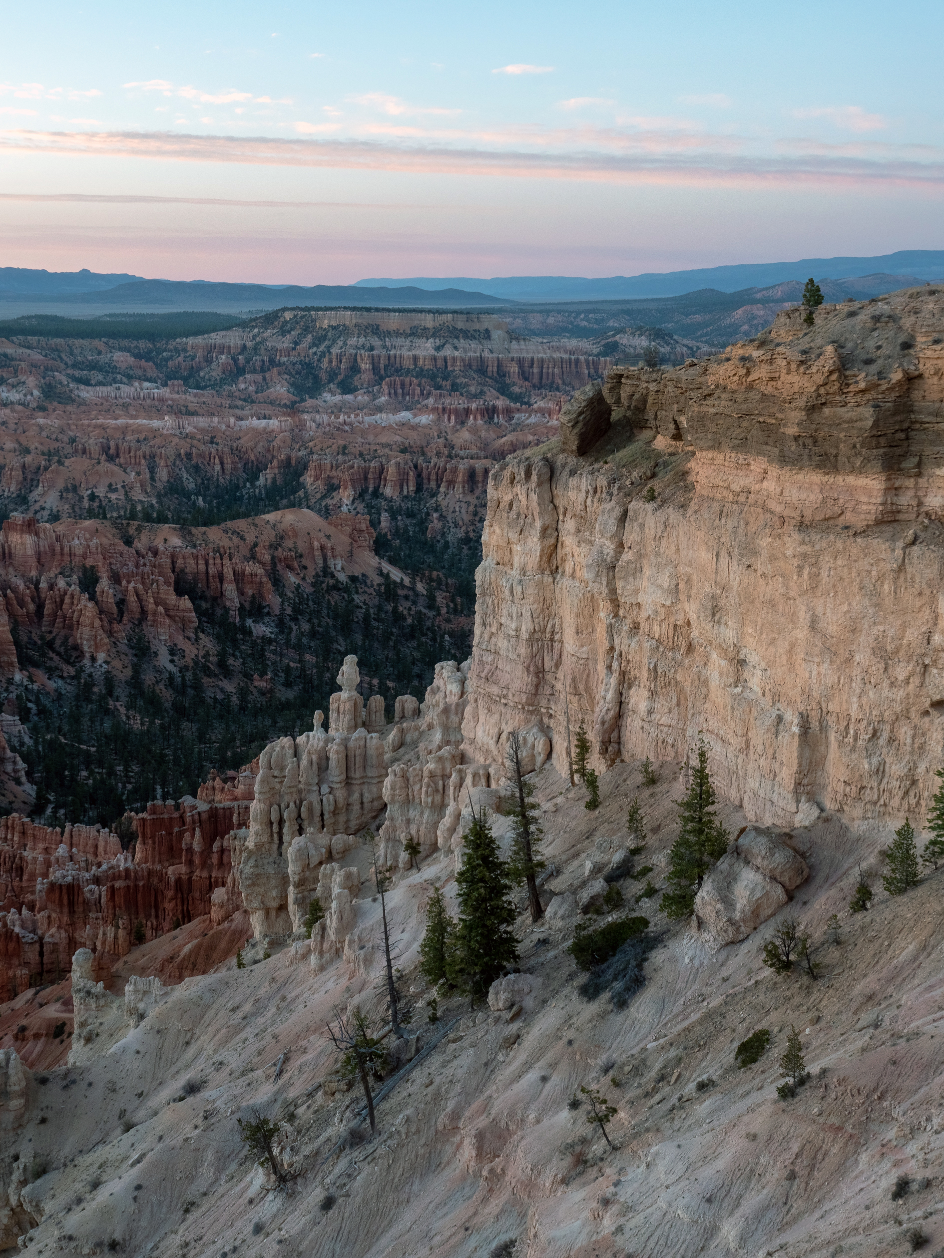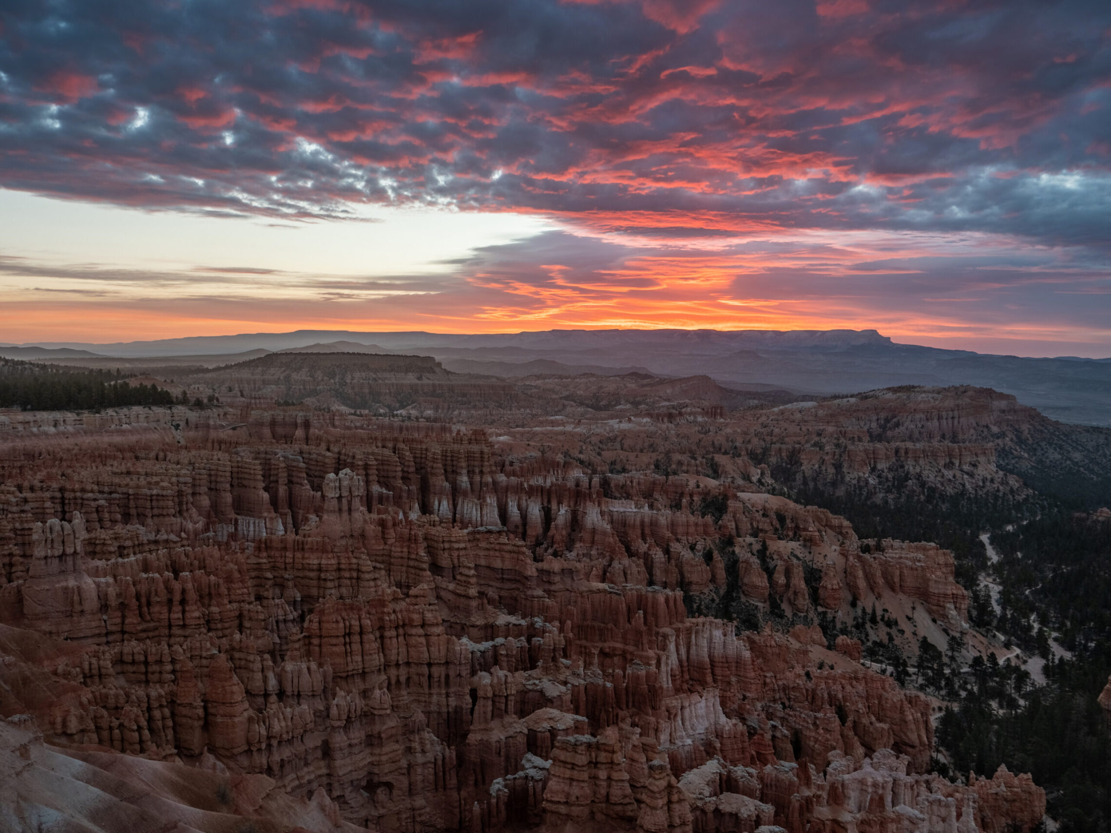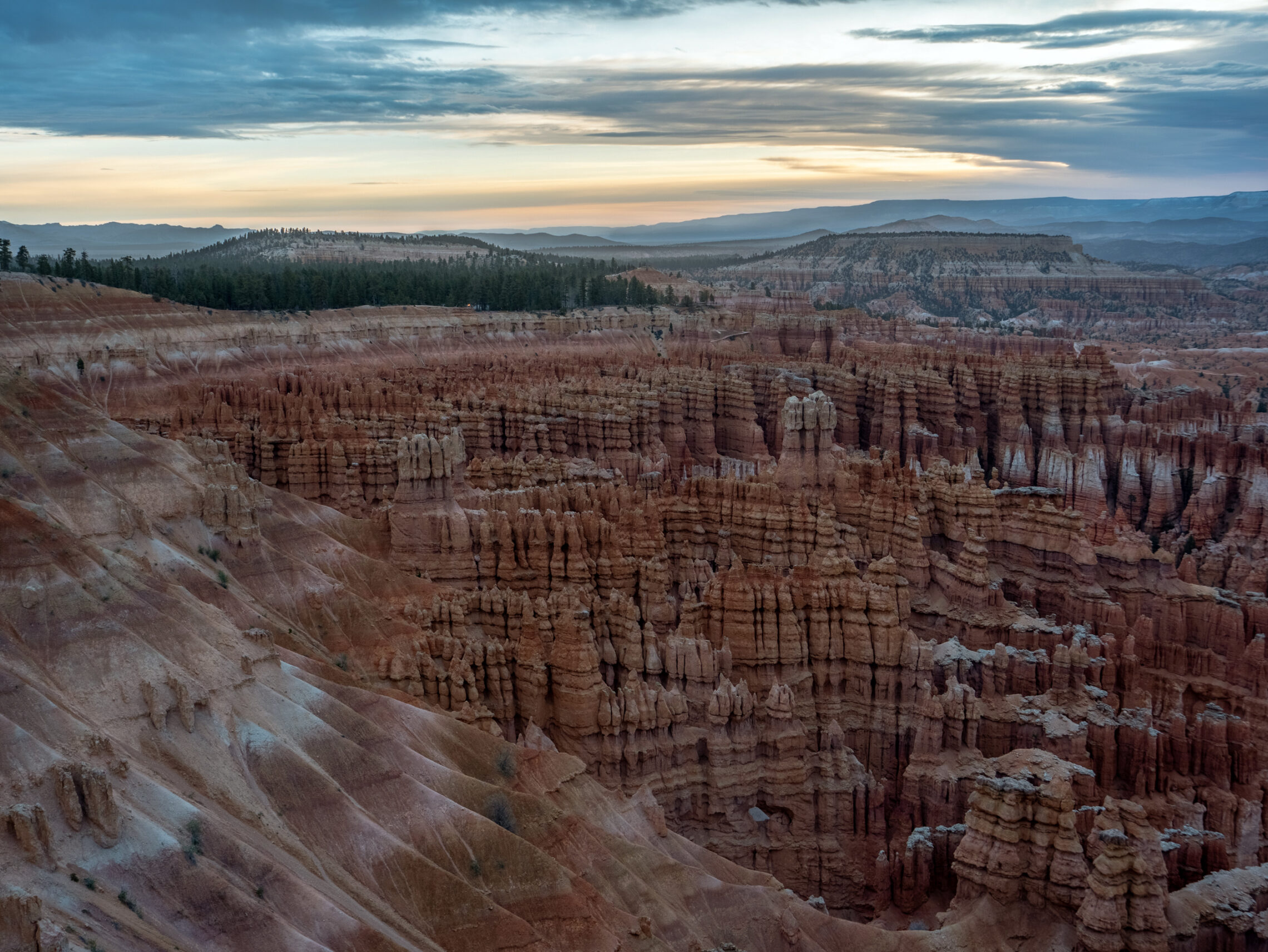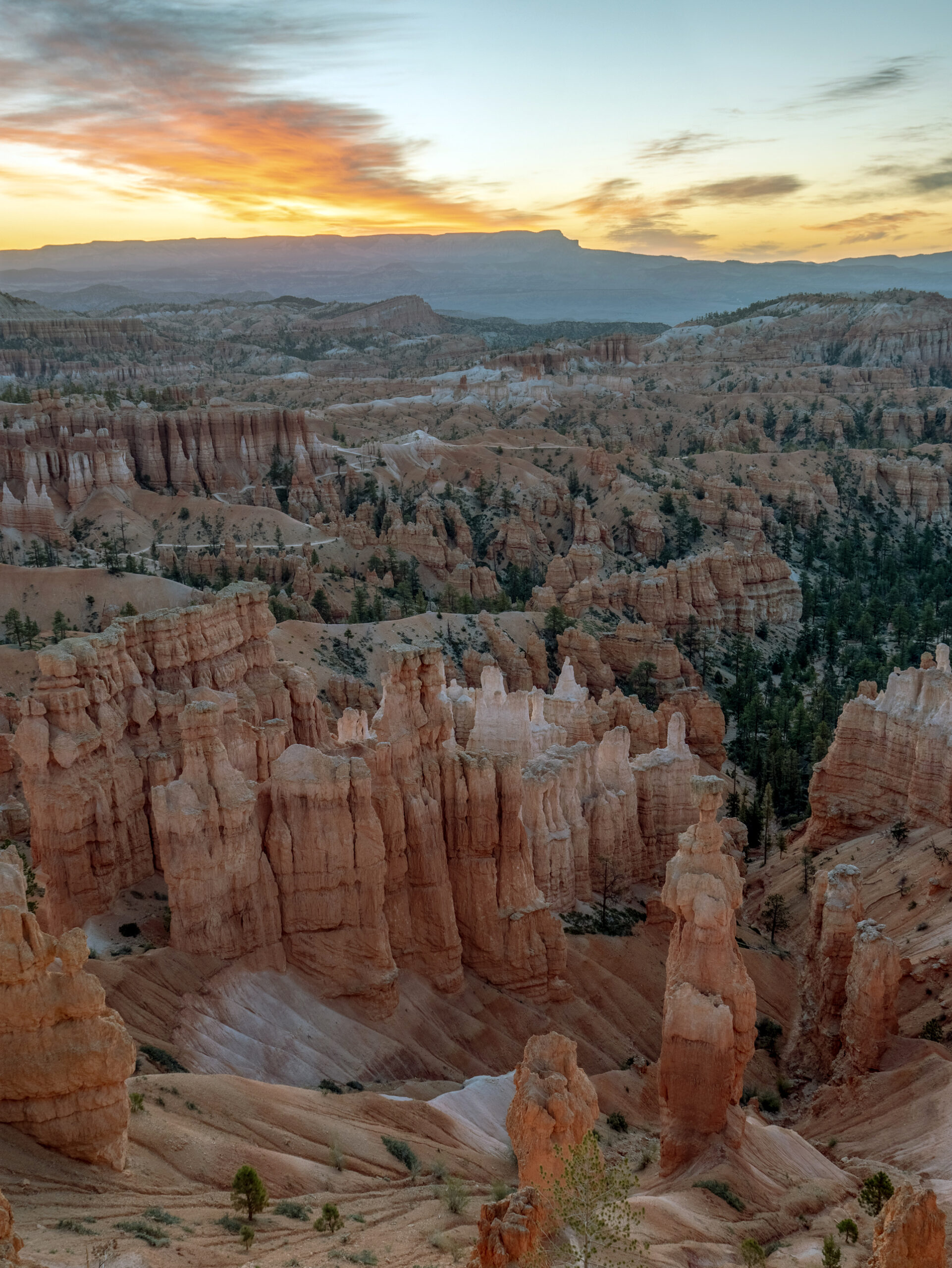 Day 1 started with arriving at Bryce Canyon National Park late in the afternoon, with enough time to head out and try to capture the setting sun. Due to the majority of the viewpoints (and the amphitheater as a whole) at Bryce facing east, there are not many locations where you can actually see the setting sun. But I was able to find a spot somewhere along the rim between Bryce Point and Inspiration Point. The first photo below is of the setting sun over the rim of the amphitheater, and the second is the view of Bryce Point, once the sun had set.