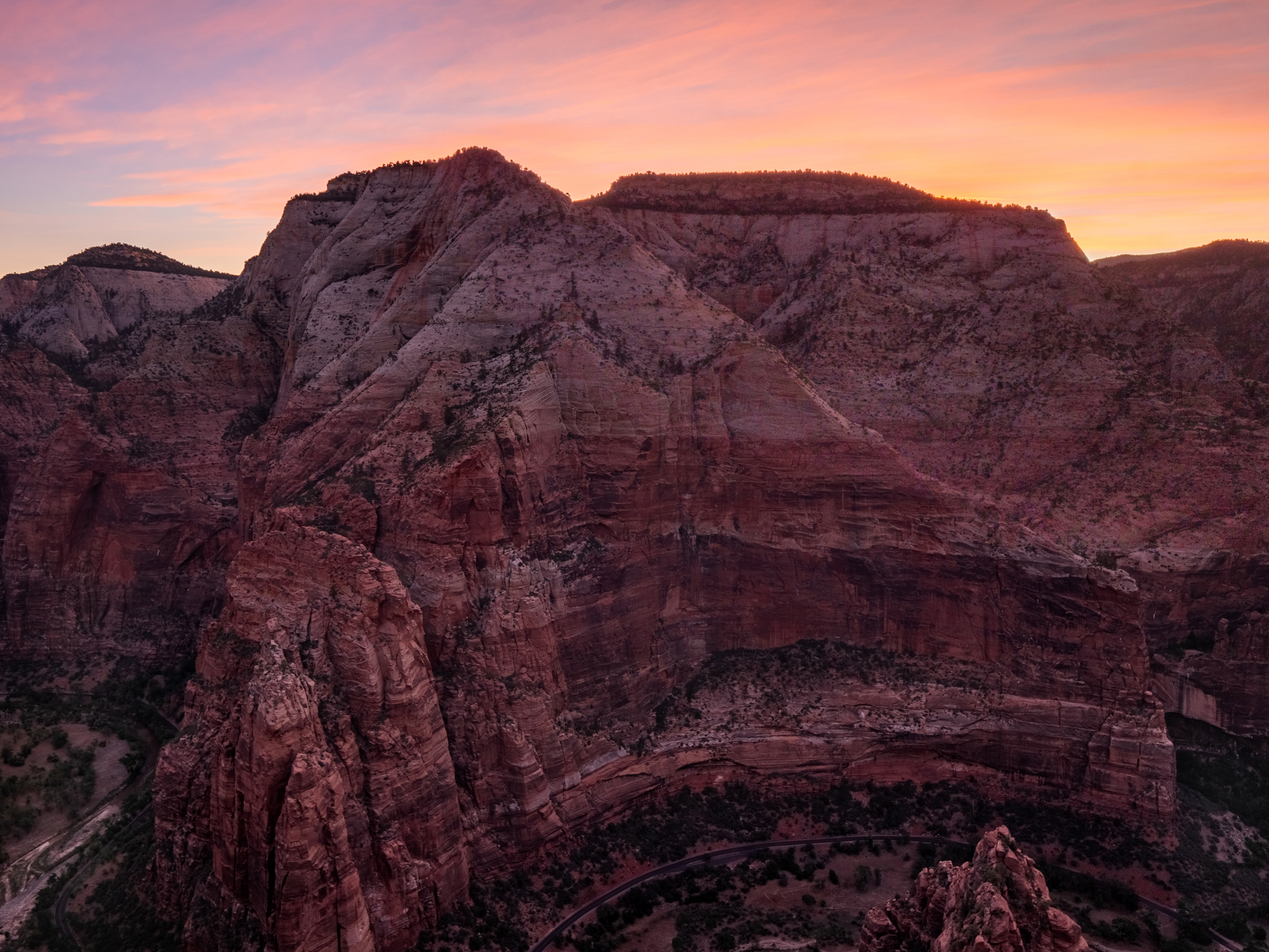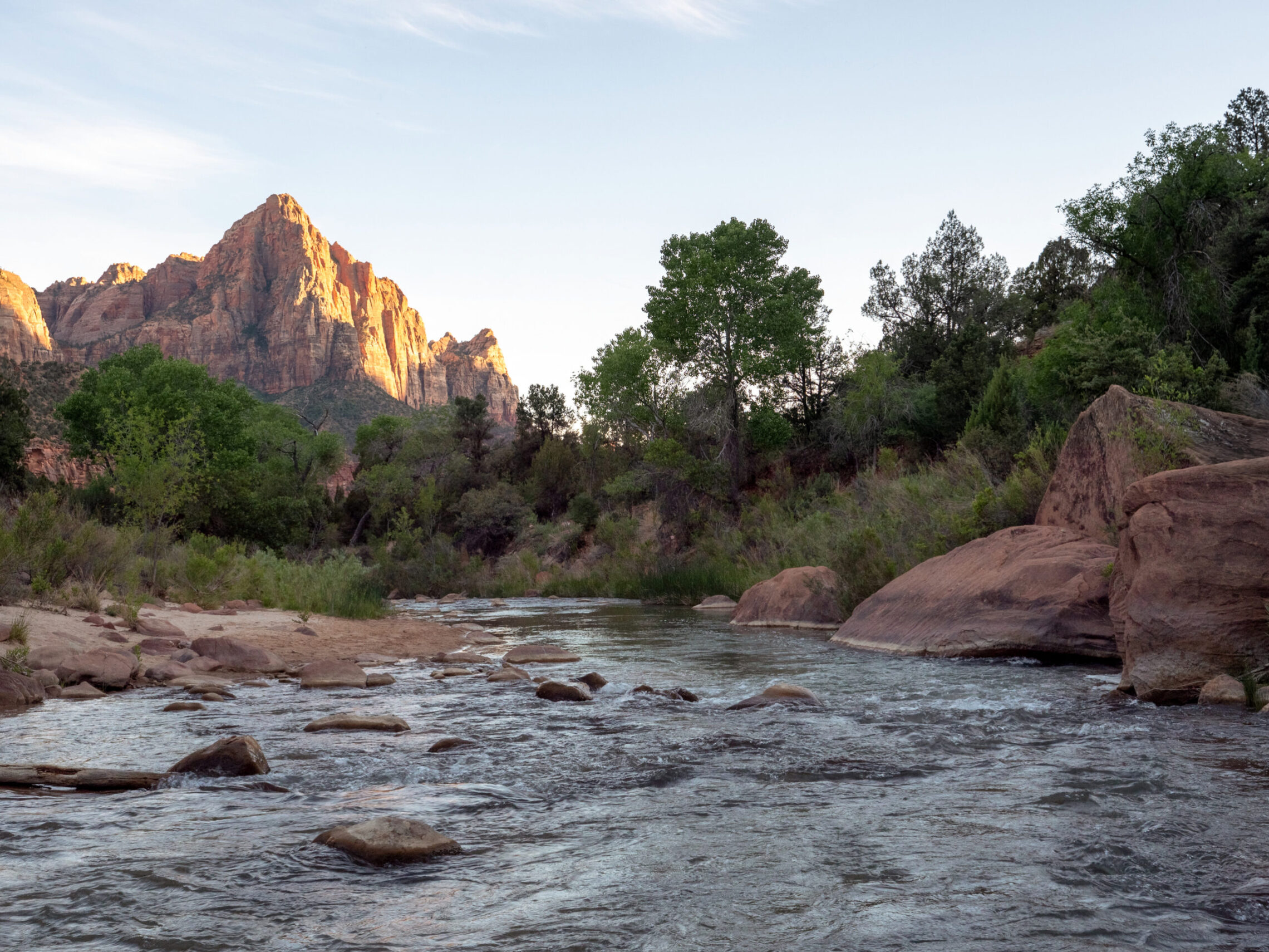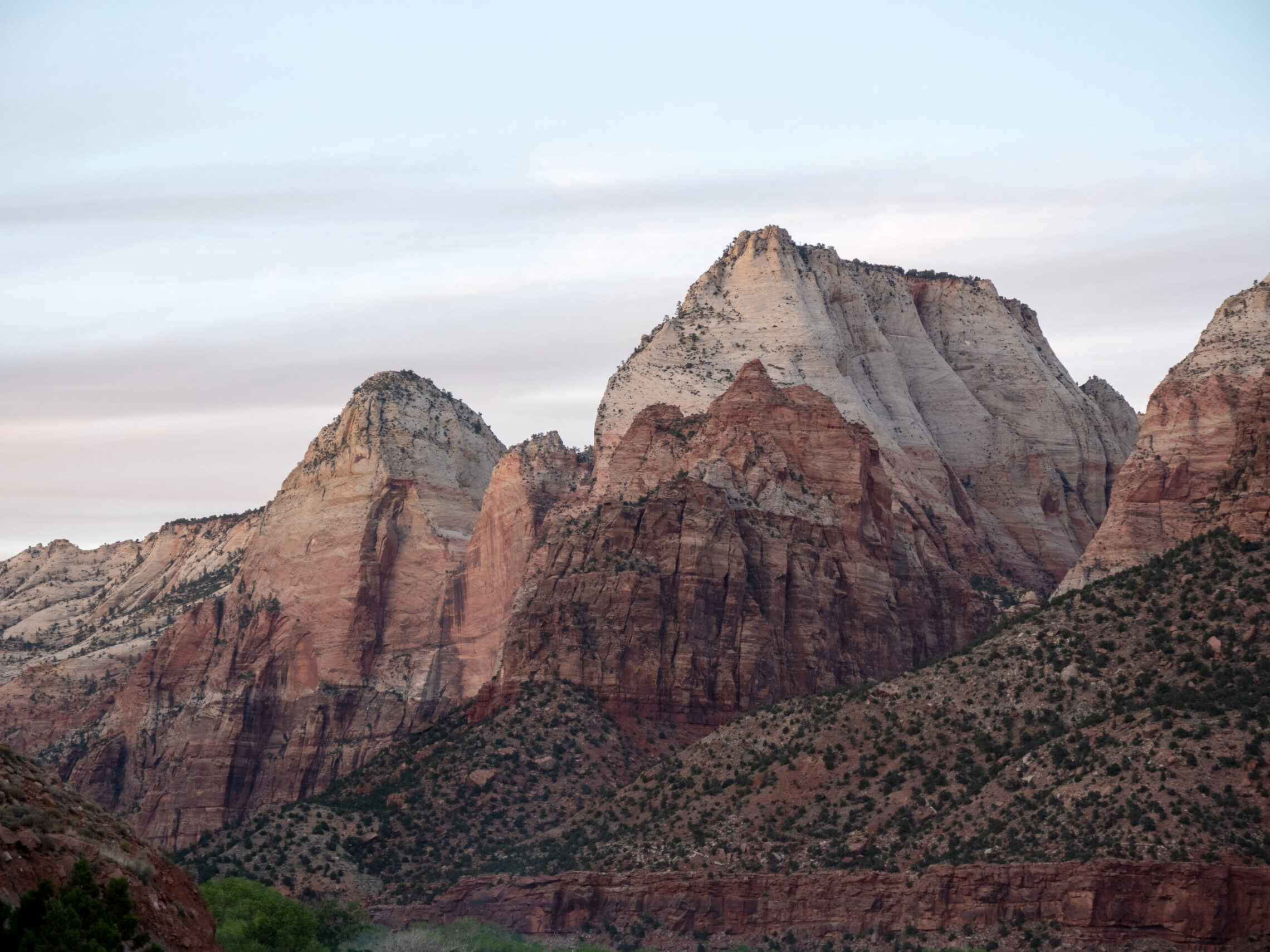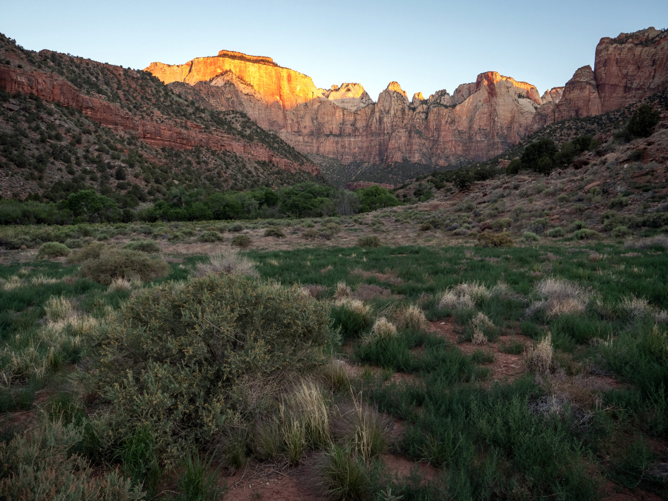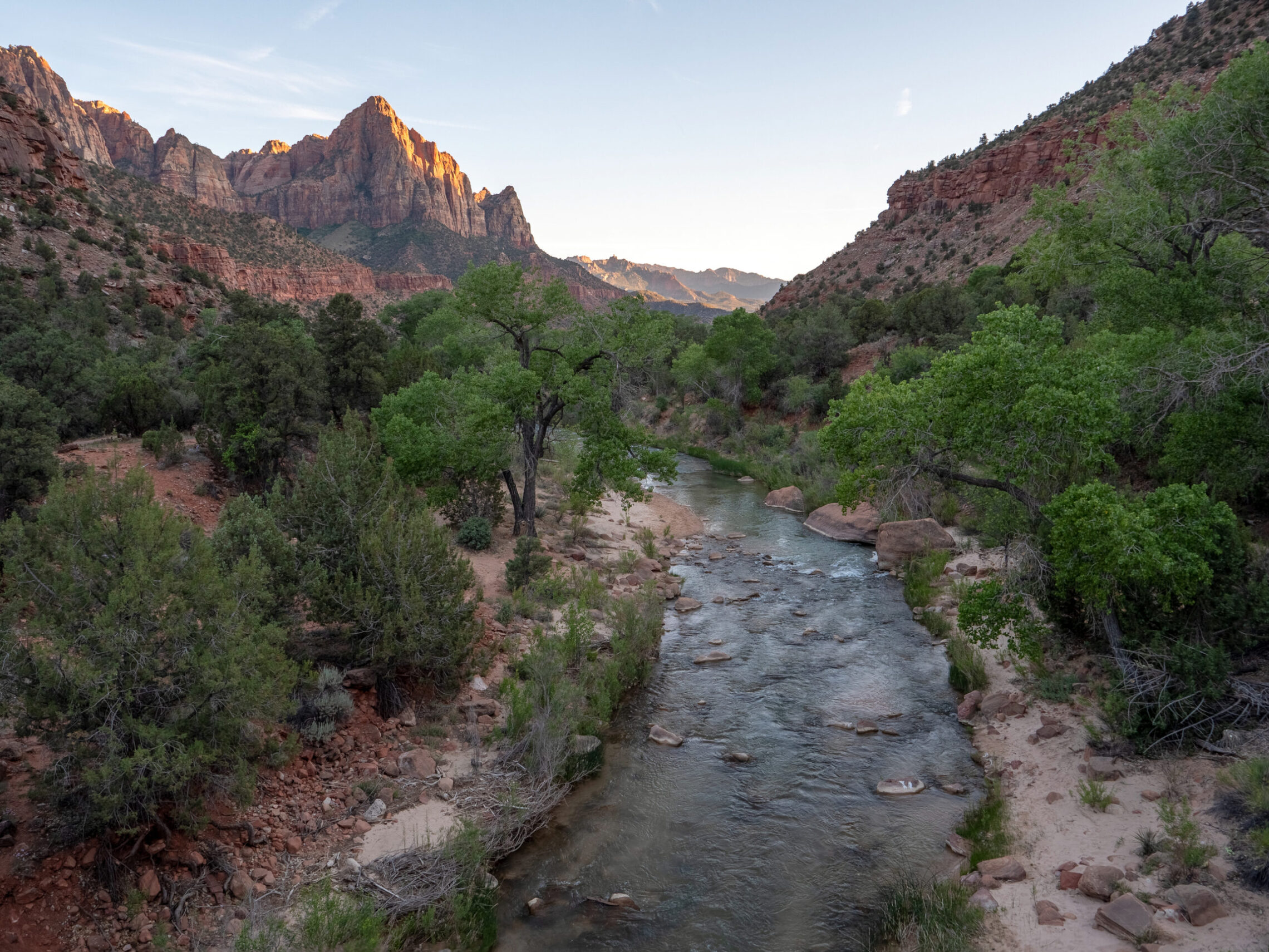 My first day in Zion ended with a sunset featuring the final light of the day illuminating the Watchman in the distance, and the virgin river in the foreground. The final photo is of the Twin Brothers, just after the sun had fallen behind the canyon’s walls.