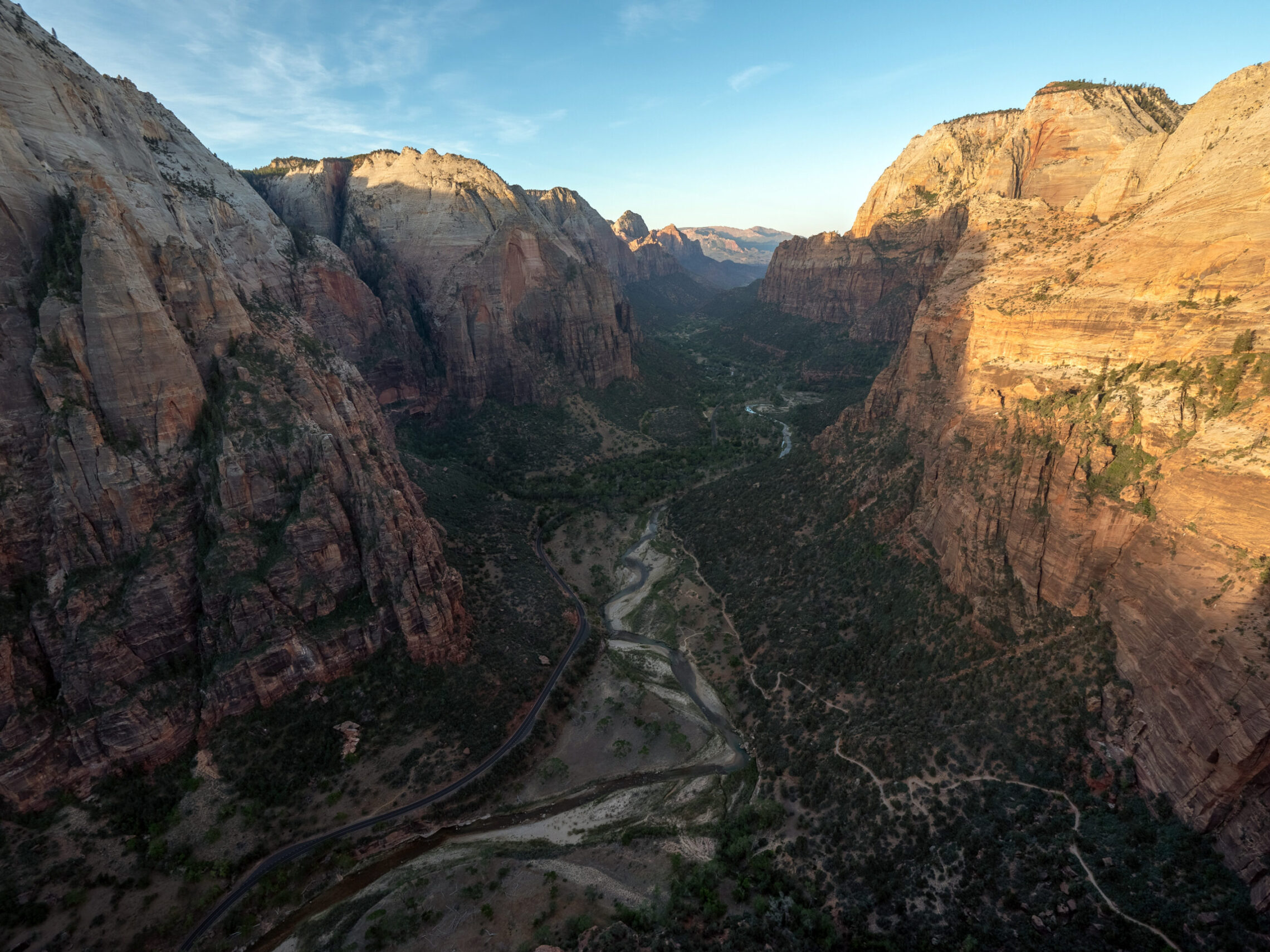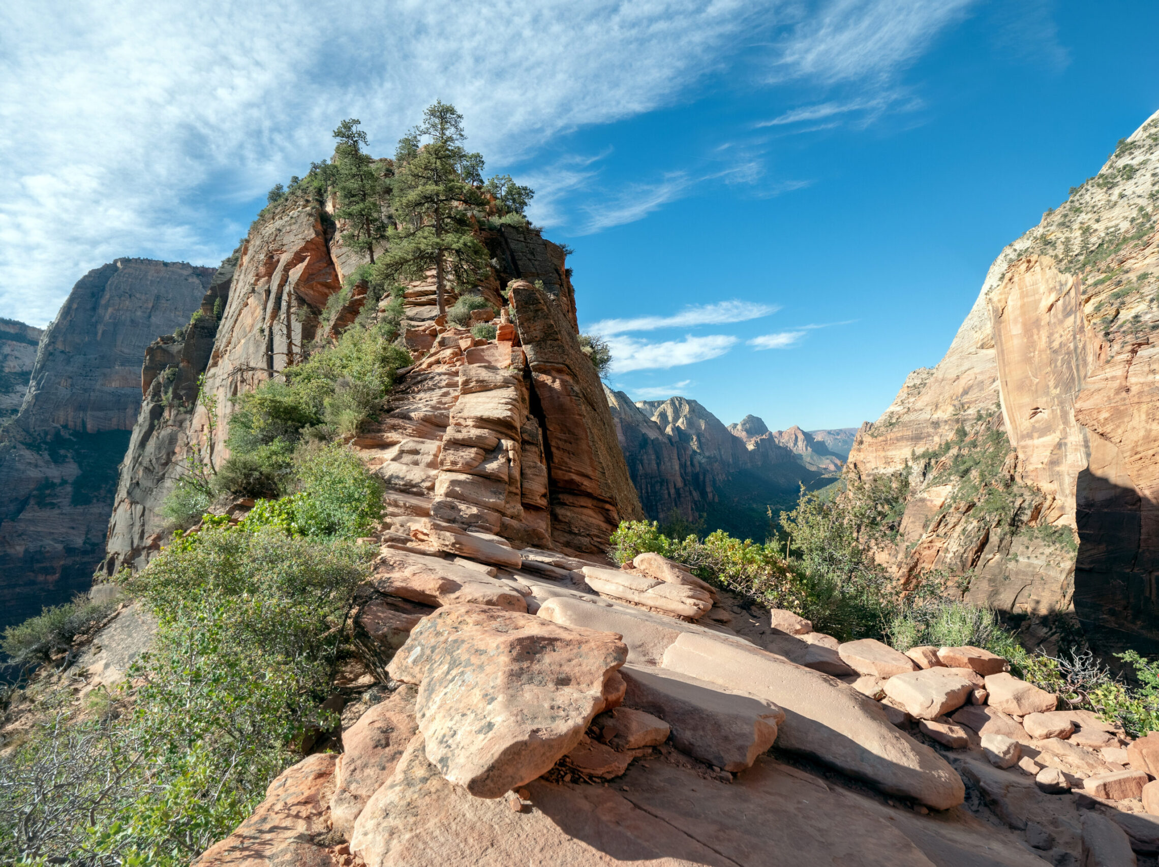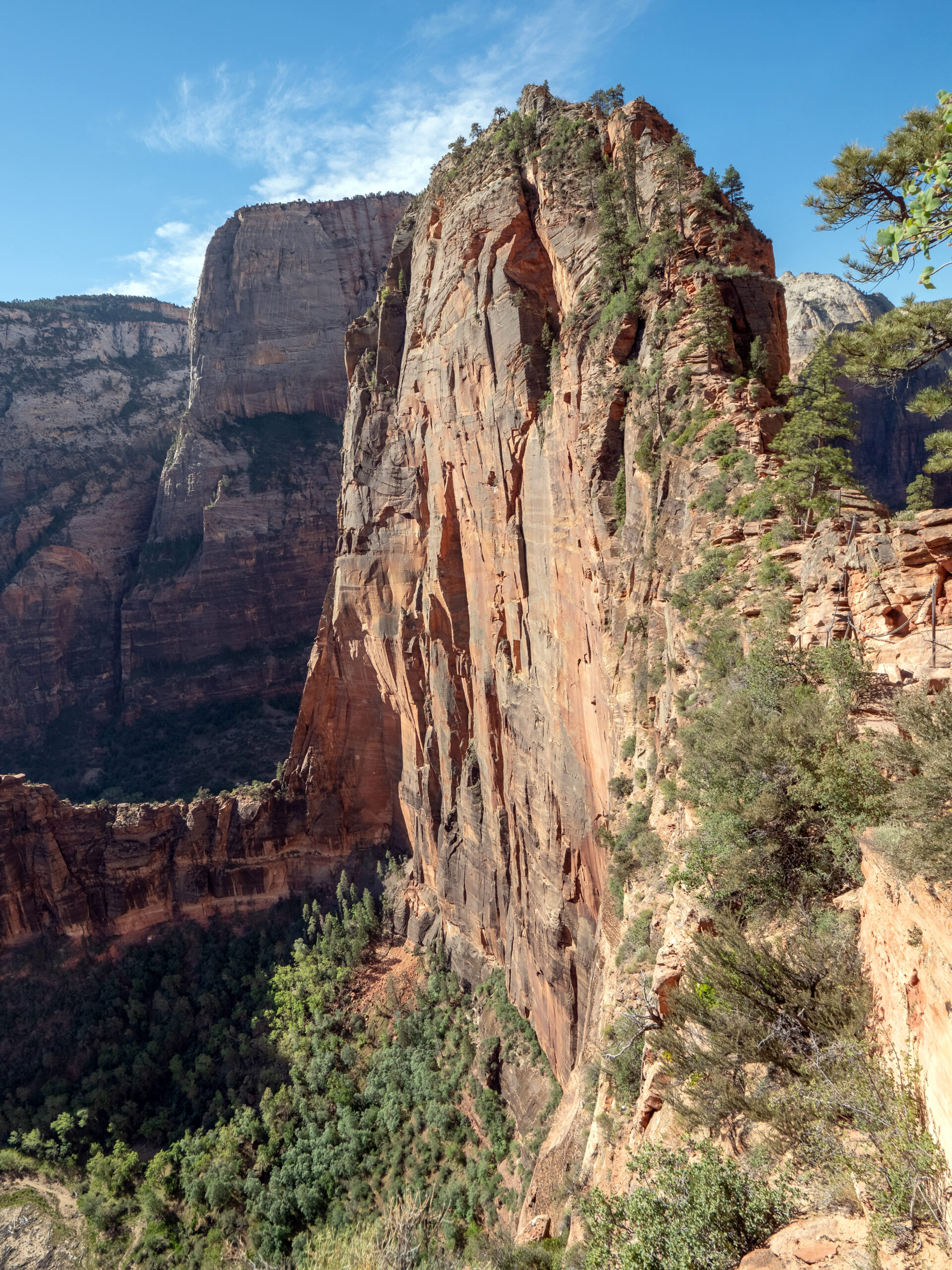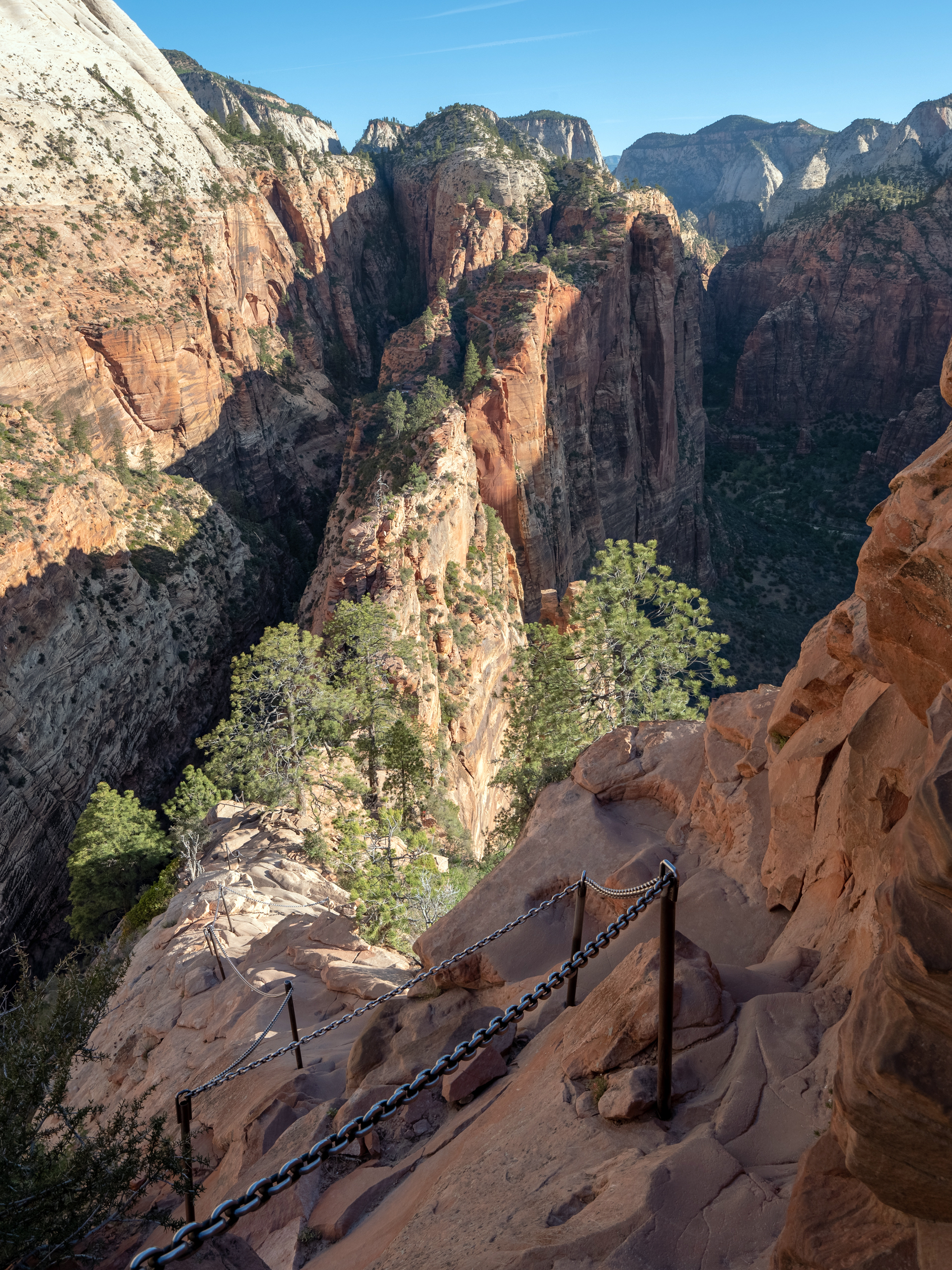 The actual hike to Angels Landing is 4.4 miles roundtrip, and includes a half mile section of narrow ledges and steep drop offs, assisted by various sections of chains to grab on to. The biggest reward was having the top to myself for almost 2 full hours before the masses started to show up, and being able to watch the canyon change as the sun came up. While I was personally comfortable ascending at night (with a bright headlamp and flashlight), I do not recommend this hike be done in darkness. For myself, I personally felt safer doing this at night, as the only time I felt a little uncomfortable was on the way back down when the crowds showed up and bottlenecks started to form in precarious places. I would choose this without the crowds in darkness, versus having full sunlight and tons of other people around you in areas where if they fell, they would take you down with them.