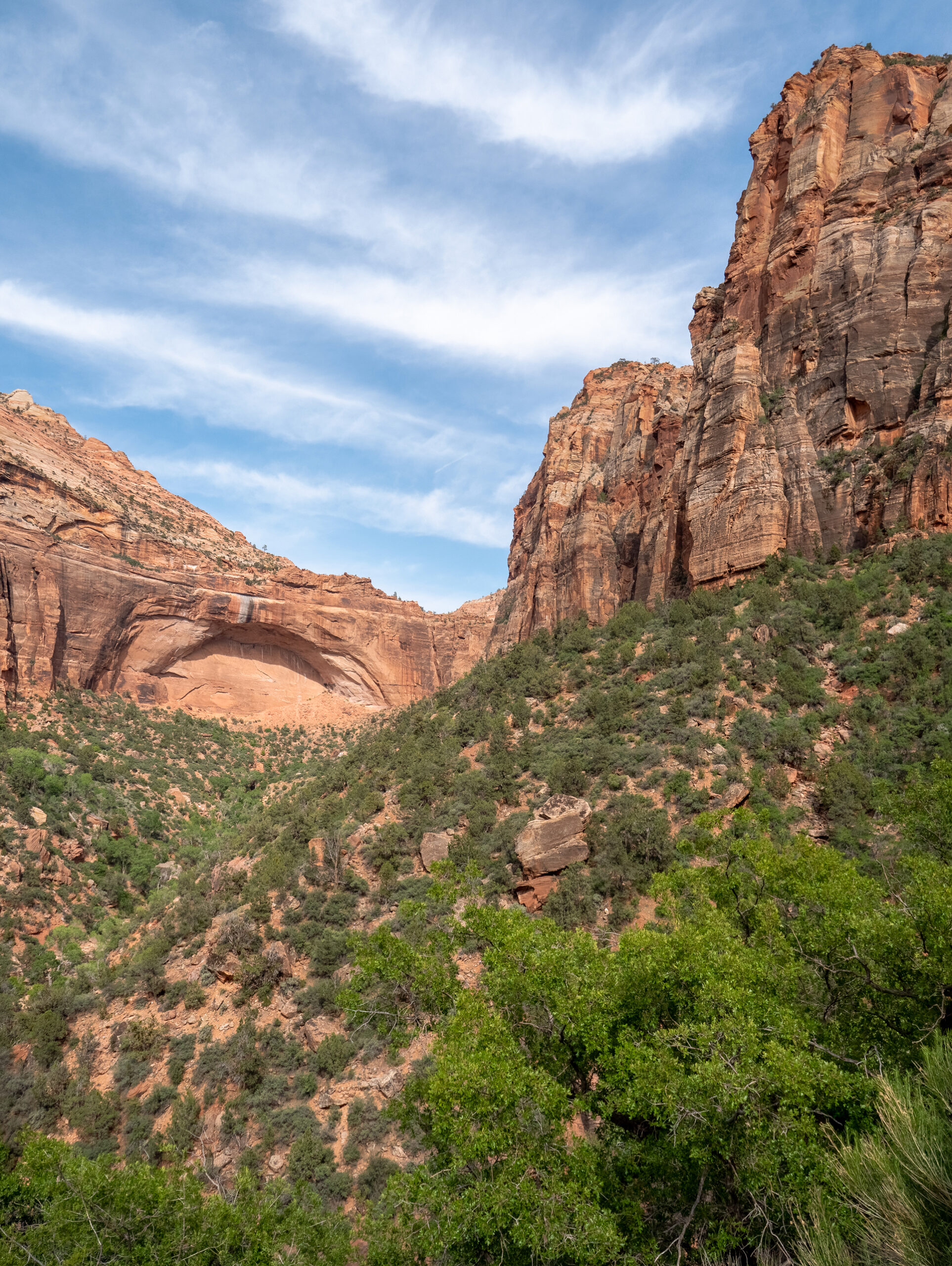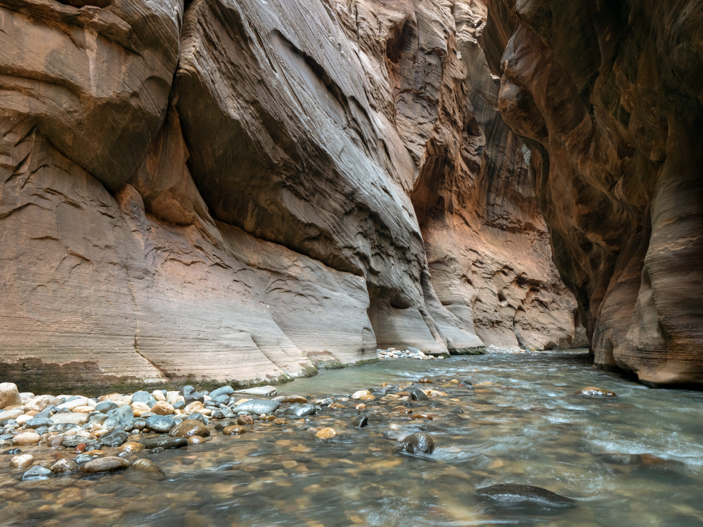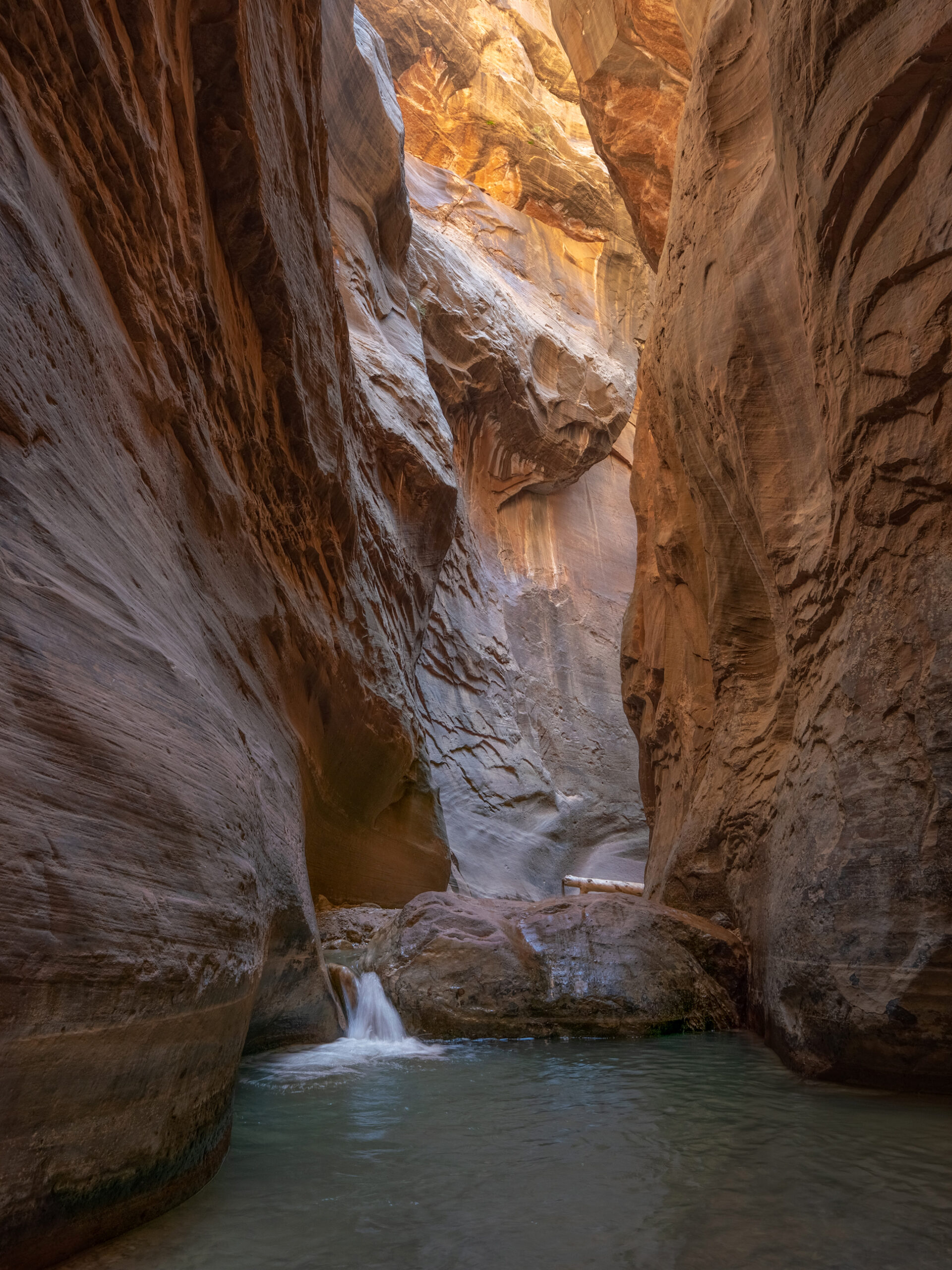 Day 7 I hiked down the Narrows, which is the section of Zion Canyon which is narrower than any other part. The walls reach 1000 feet tall, and the river inside this gorge can be just around 20 feet wide at times. The hike itself takes place in the river directly, where you are walking for miles in various depths of water. Most of the hike was under knee-height, but there were parts which extended as high as my chest. Something to think about while making this hike is the possibility of flash flooding, and the weather forecast must be carefully looked at before starting the hike. Storms even many miles away can affect the water levels in the Narrows, and a flash flood can occur with almost no warning given the right circumstances. So make sure there is almost no risk of this occurring before taking this hike, as there are many areas with absolutely no escape due to the high and steep walls surrounding the river. But, if it is a safe day to do so, this hike is incredibly unique and an amazing experience.