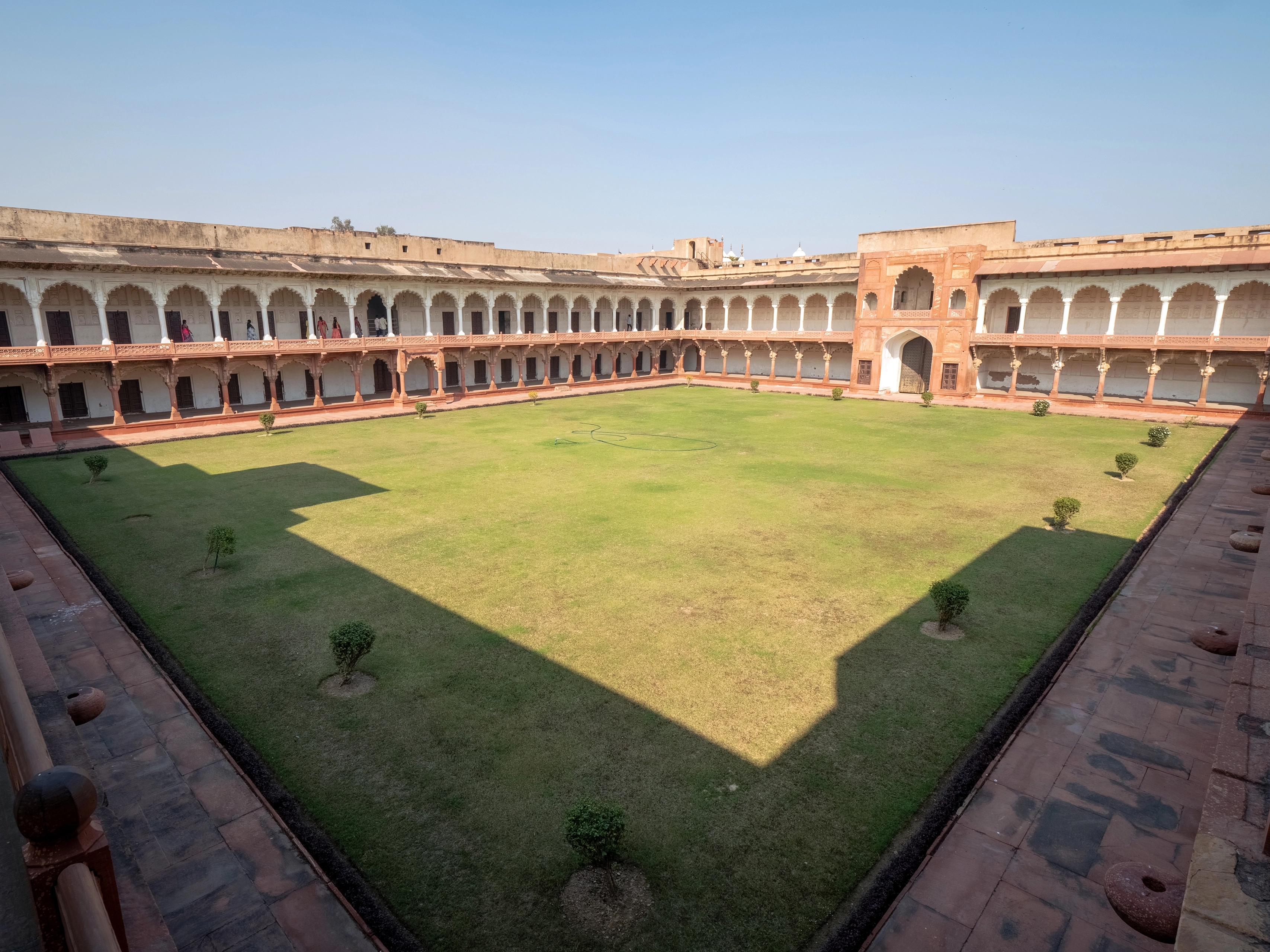 After visiting the Taj Mahal, and the quick rooftop detour, it was on to Agra Fort, a massive, red-sandstone stronghold which was once the main residence and power center of the Mughal emperors. It is surrounded by towering walls and a deep moat. Its more than just a military fortress, as it is a self-contained royal city, whose walls housed centuries of political drama and the daily life of an empire.