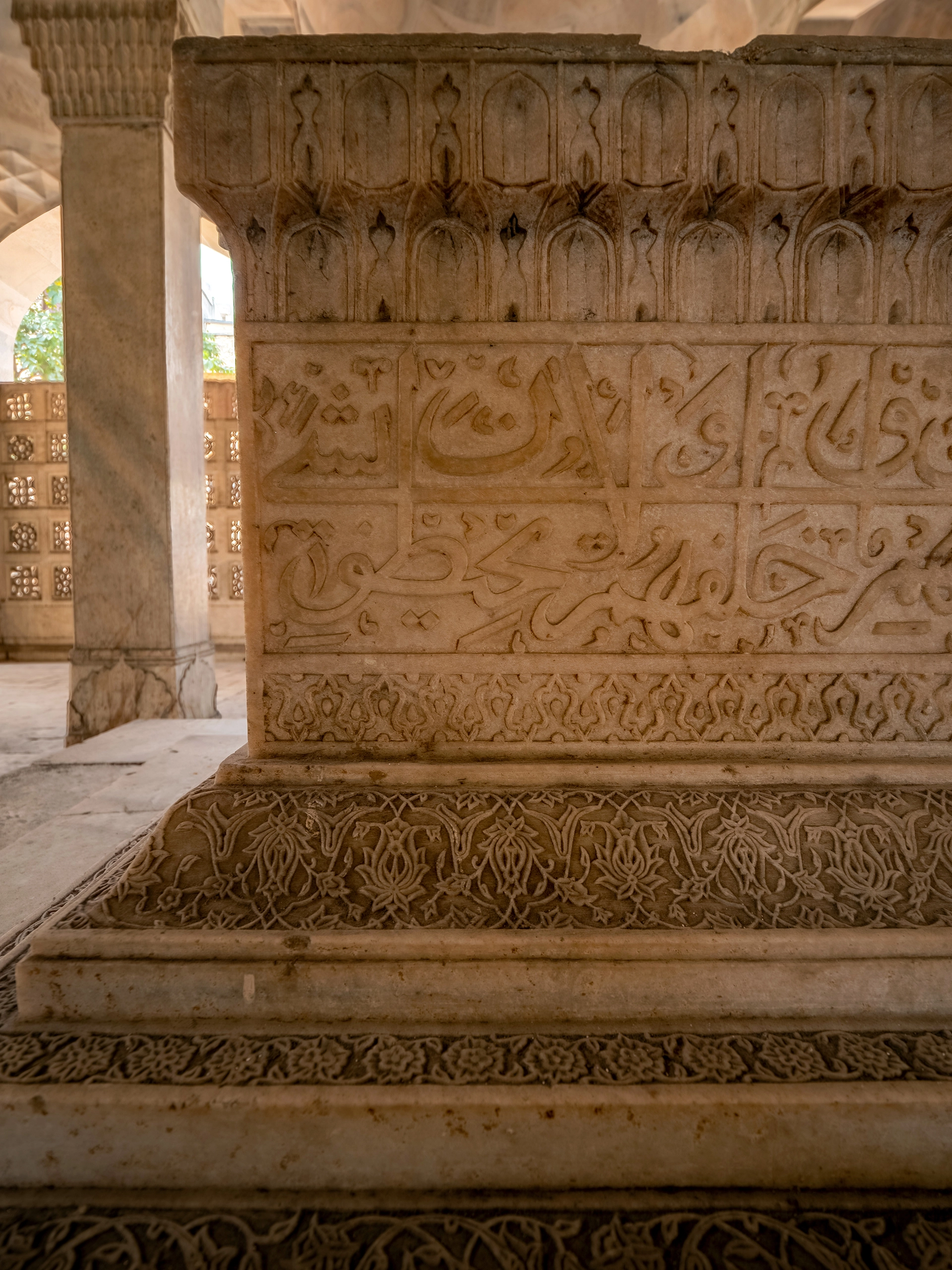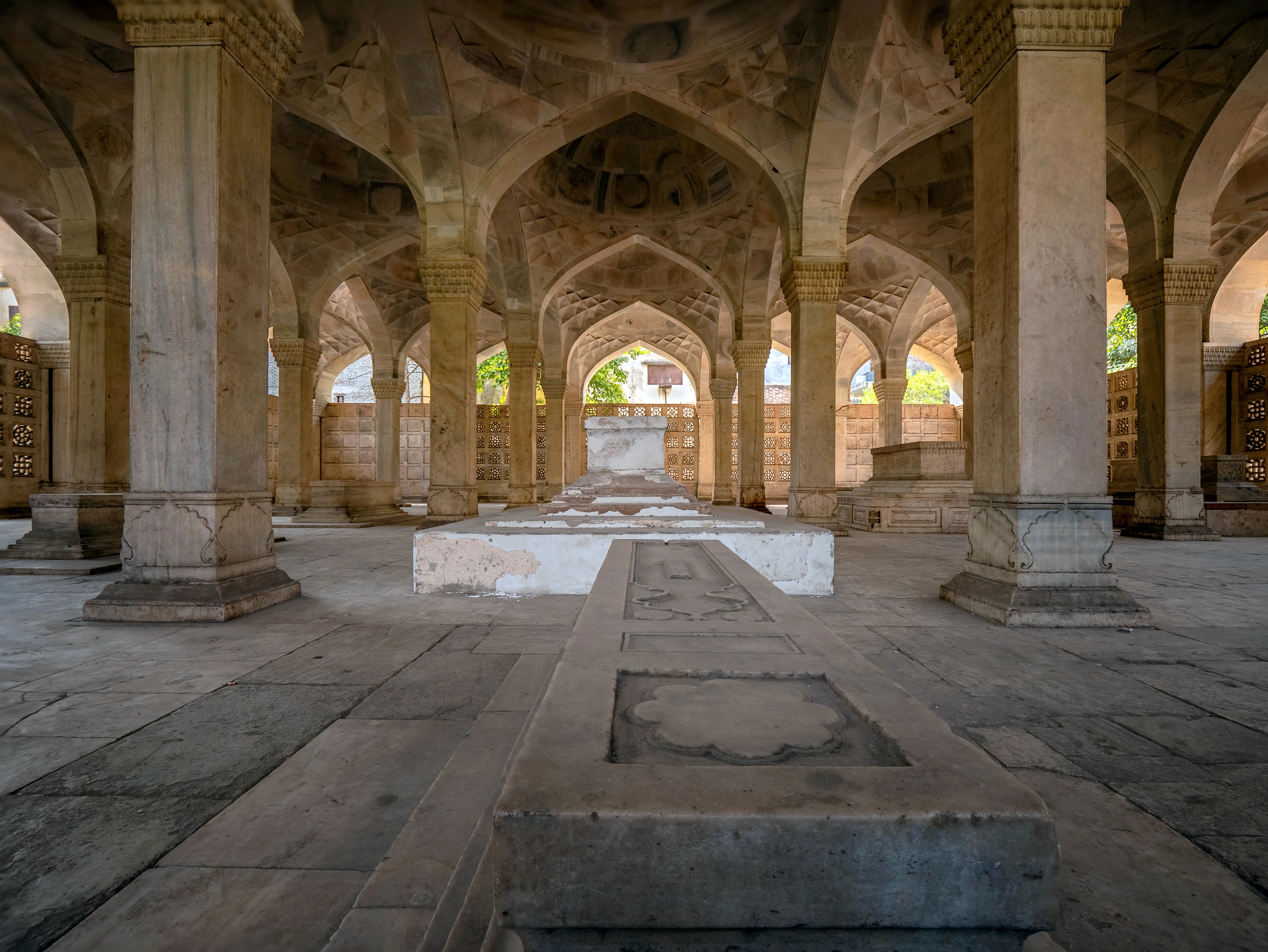 One of the first places I stopped at during my tour of Delhi was the Chausath Khamba, a 17th-century tomb built entirely of white marble. It was constructed between 1623 and 1624 by Mirza Aziz Koka, a foster brother of the Mughal Emperor Akbar, as a mausoleum for himself and his family.